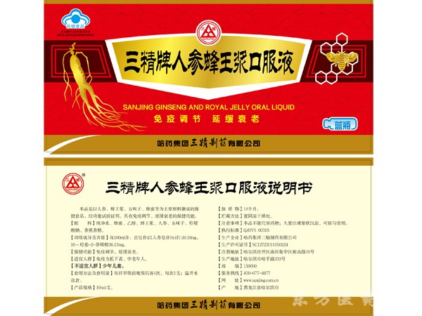 产品标签:“三精”“人参”“蜂王浆”“哈药”“免疫力”“延缓衰老”“口服液”